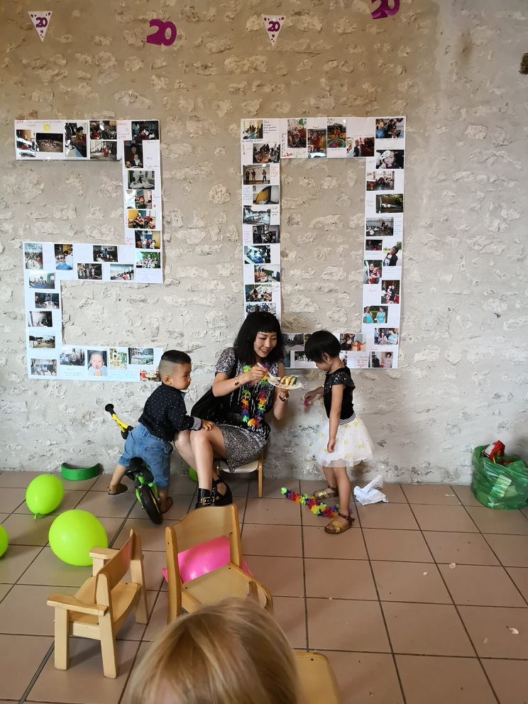 1998 – 2018 ! Lucette est plus qu’une salariée de la crèche ; elle en est la figure emblématique ! Elle travaille d’abord avec Brigitte et Paulette dans la maison de la place Dunoy où la crèche était installée. Elle est encore présente pour le déménagement dans les locaux actuels, en 2007, et c’est encore elle qui accueille les mouflets et leurs familles aujourd’hui, avec une fraîcheur et une bienveillance constantes. Sur 20 ans, cela représente beaucoup de familles qui se sont liées d’amitié avec elle. Cet anniversaire était une belle occasion de célébrer les enfants d’hier et d’aujourd’hui autour de Lucette : une fête surprise concoctée par les familles d’aujourd’hui et ses grands enfants à elle, avec musique, photos souvenirs et chansons, gâteau d’anniversaire et surtout beaucoup de monde ! Les parents, les enfants de ces 20 dernières années étaient bien représentés comme en atteste la taille de certains ex-mouflets sur les photos!