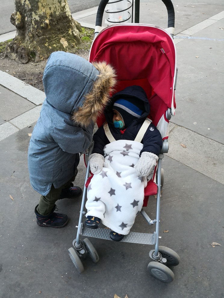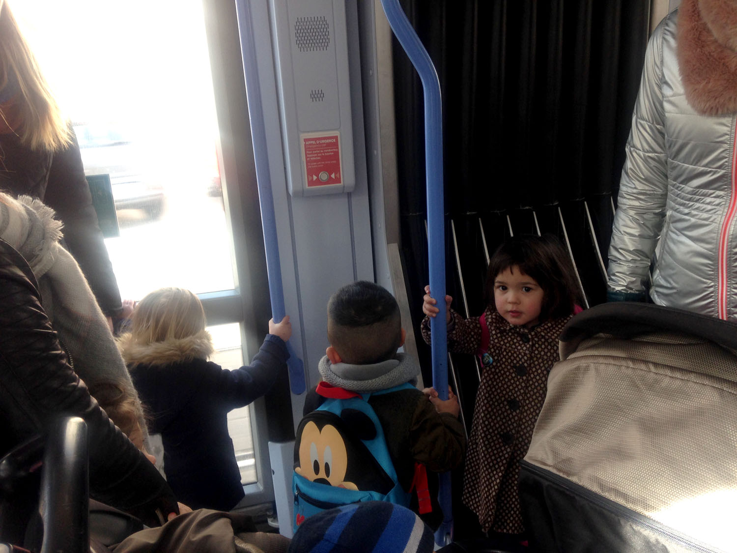On n’arrête pas l’envie de sortir des P’tits Mouflets pendant les mois d’hiver ! Certes, au cours de ce mois de février 2018, le thermomètre a frisé les 20°C mais de décembre à mars, par tous le temps (ou presque), ils vont se promener ! En poussette, à pieds, en carriole et même en tram, l’expérience du voyage vers la boulangerie, un marché, un parc, une aire de jeux est importante pour eux ! L’initiative en revient aux parents ou aux professionnels, dans le respect de la réglementation en vigueur (1 adulte pour 2 enfants) et de la volonté des familles.